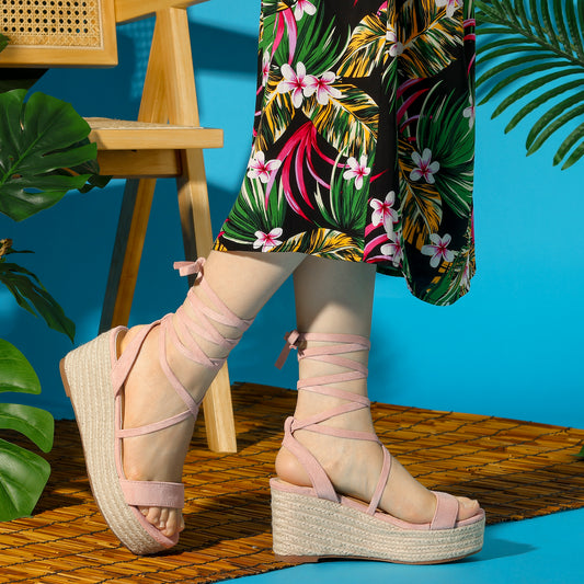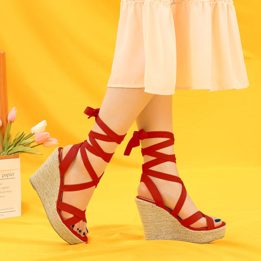 Women's Lace Up Wedge Heel Platform Slingback Strappy Sandals