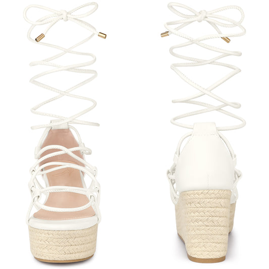 Women Espadrille Platform Wedge Heel Lace Up Sandals