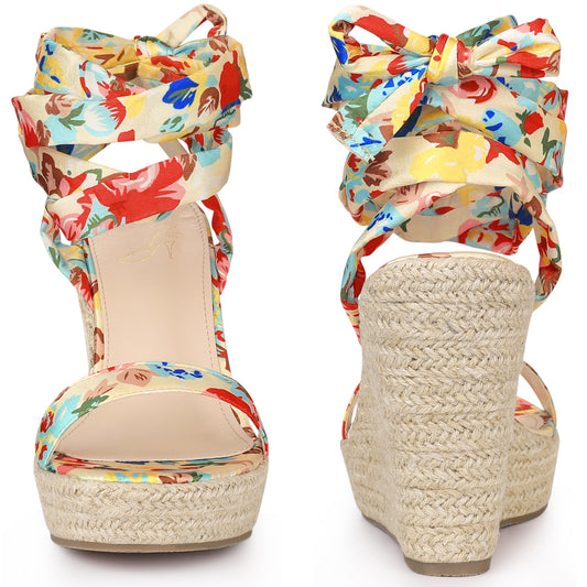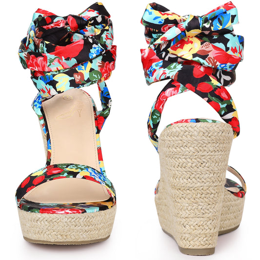 Women Platform Floral Printed Espadrille Wedge Sandals