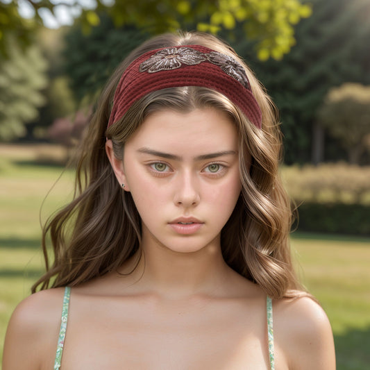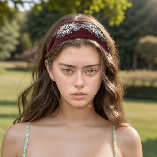 Sequin Flower Vintage Wide Headband for Women, Dark Red 1 Pc