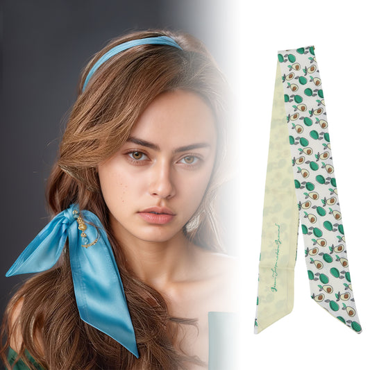 Fruit Print Long Ribbon Headband for Women Green 1 Pc