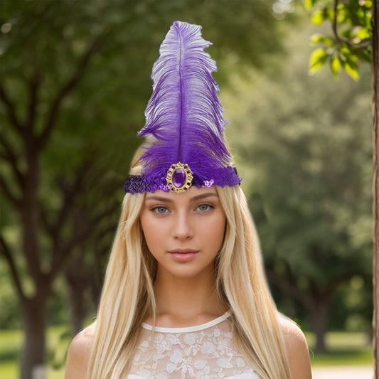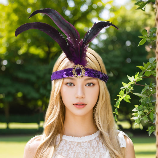 Feather Faux Diamond Sequins Headband for Women Dark Purple 1 Pc