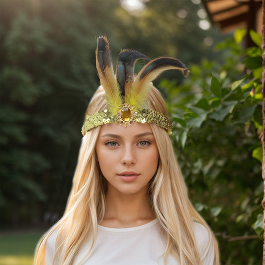 Feather Sequins Headband for Women Gold Tone 1 Pc