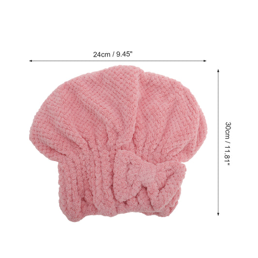 1 Pc Water-absorbent Bow Hair Towel Drying Cap for Bathroom Pink