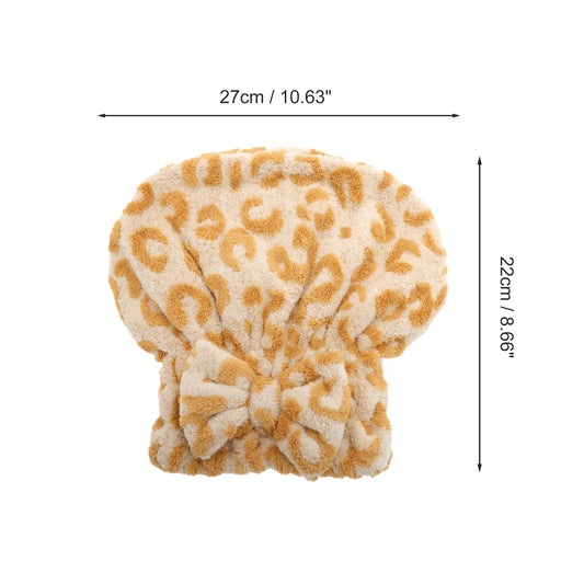 1 Pc Water-absorbent Hair Towel Cap Bow Leopard Hair Towel Yellow