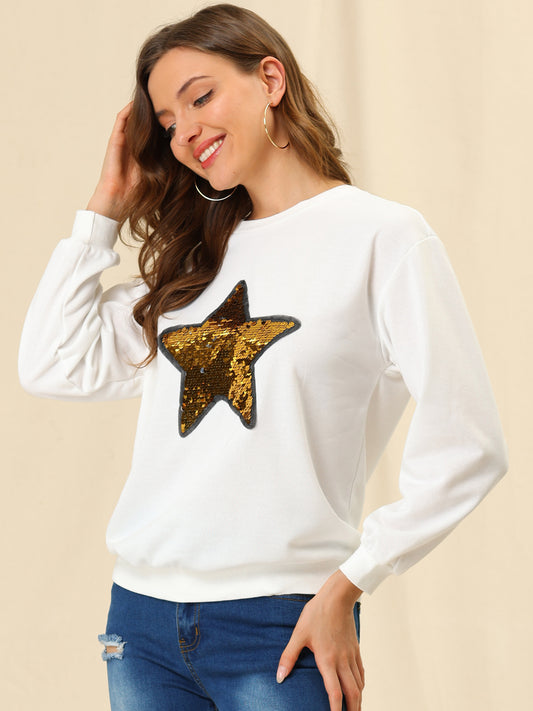 Women's Sequin Shiny Star Crew Neck Long Sleeve Sweatshirt Top