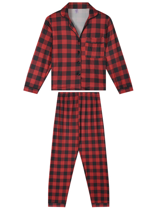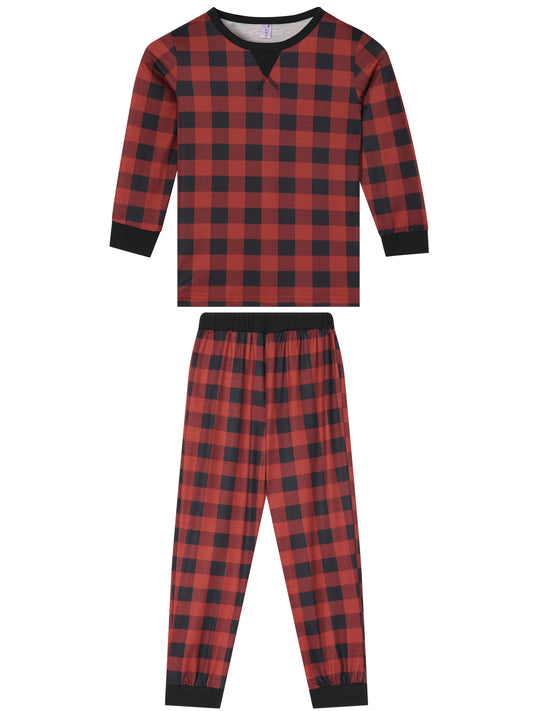 Ensemble pyjama de Noël familial pour enfants, haut à manches longues et pantalon assorti, imprimé écossais rouge et noir