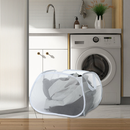 Folding Laundry Basket Portable Hamper Basket for Bathroom 90L White