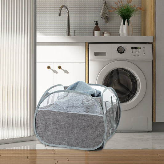 Folding Laundry Basket Breathable Hamper Basket for Bathroom 90L Gray