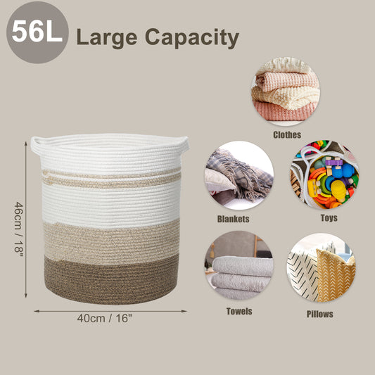 Laundry Basket Hamper, 16"x18" Tall Woven Bohemia Laundry Basket, 56L Coffee Color