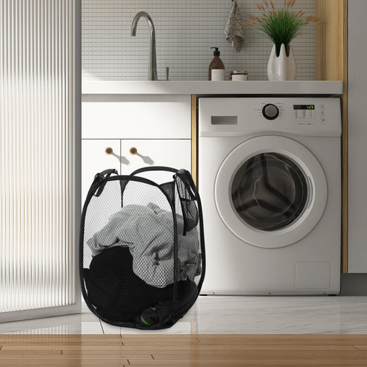 Folding Laundry Basket Durable Laundry Hamper for Bathroom 50L Black