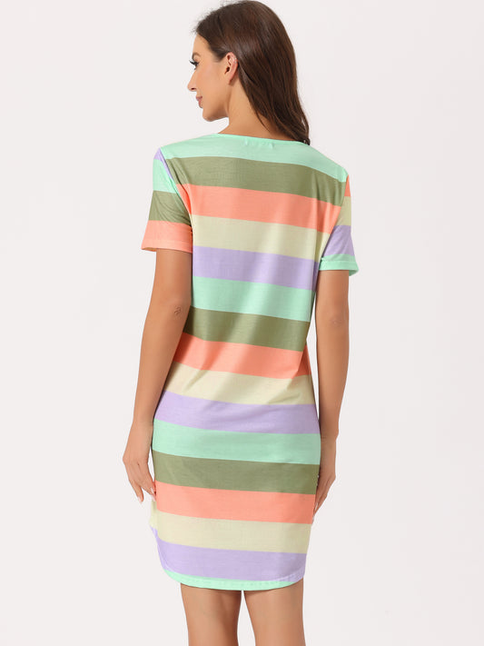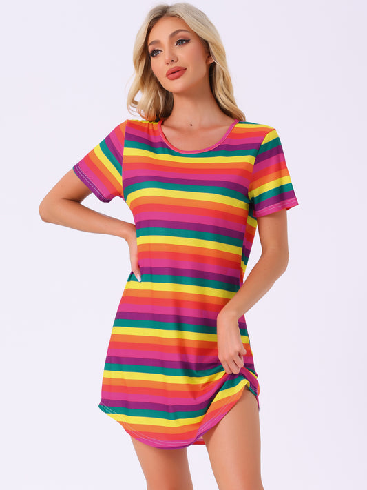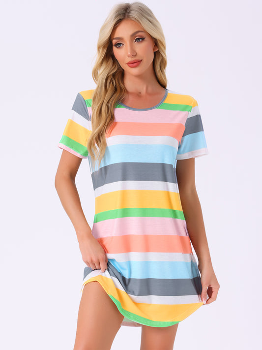 Robe t-shirt à rayures colorées et manches courtes pour femme