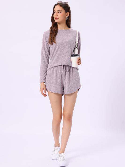 Pyjama femme, haut à manches longues et short, ceinture élastique, ensemble de détente assorti, survêtement avec poches