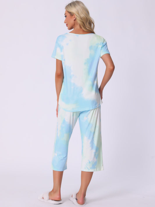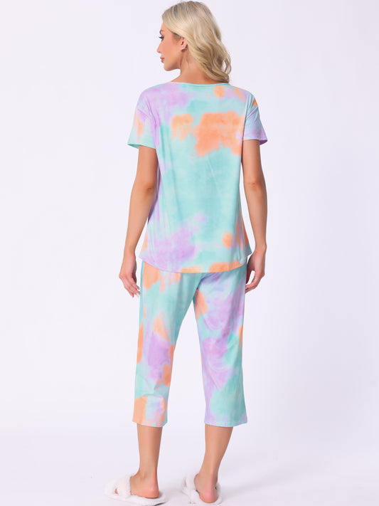 Ensemble de détente 2 pièces à manches courtes et pantalon capri tie-dye avec poches pour femme