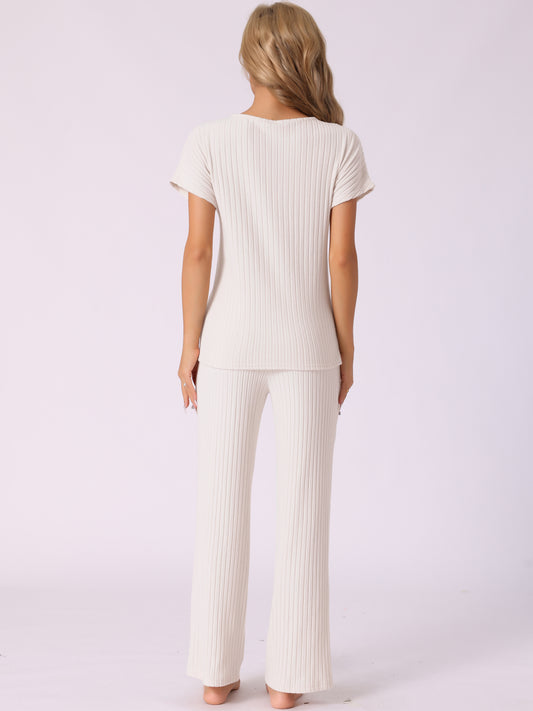 Ensemble 2 pièces pour femme : pull en tricot côtelé, pull à manches courtes, pantalon large, pyjama