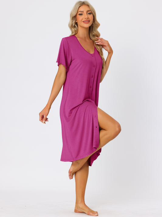 Chemise de nuit à manches courtes pour femme, chemise de nuit boutonnée, robe pyjama
