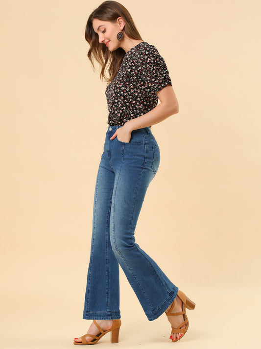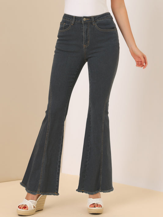 Women's High Waist Flare Jeans Retro Stretchy Denim Jean Pants Bell Bottom Jeans