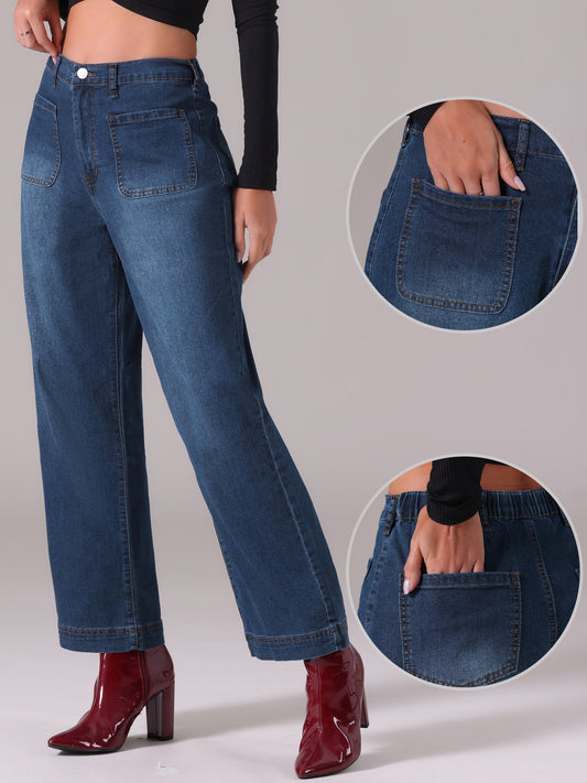 Women's Wide Leg Jeans High Waisted Stretchy Straight Leg Jeans Buttoned Loose Denim Pants