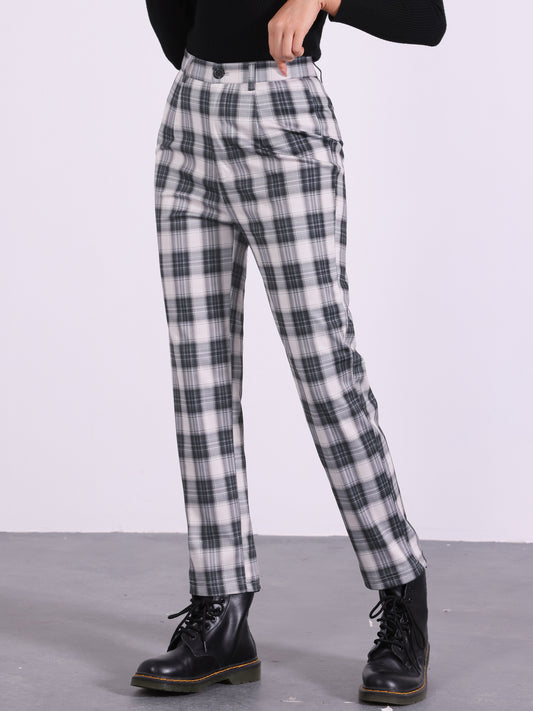 Women's High Waist Casual Plaid Tartan Straight Leg Long Pants