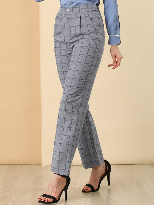 Women's Plaid Work Pant Vintage Houndstooth Wide Leg Straight Long Trousers