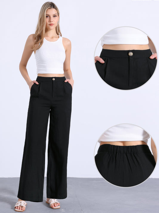Women's Casual Wide Leg Pants Elastic High Waist One Button Lightwieght Pants Trousers with Pockets