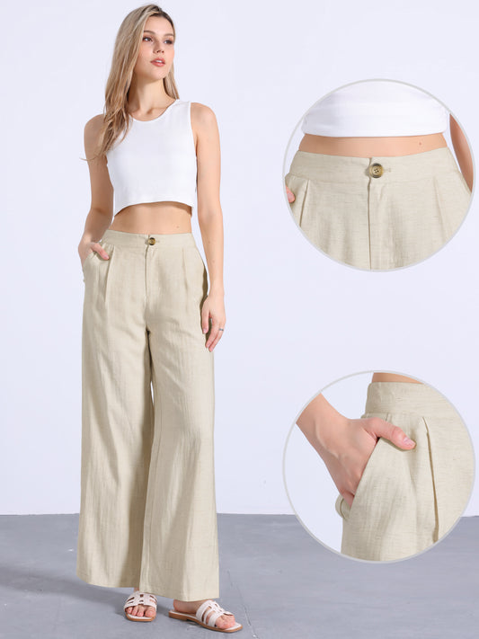 Women's Linen Palazzo Pants Summer Flowy Wide Leg Casual Vacaction Beach Trousers with Pockets