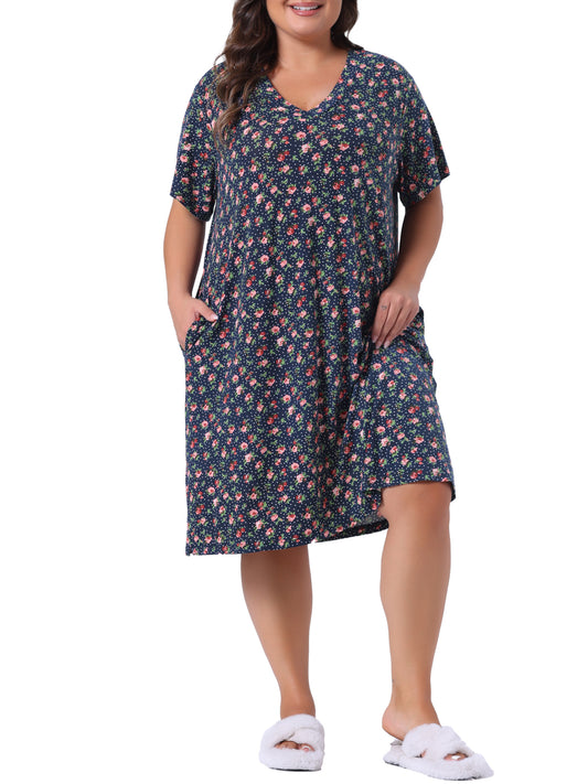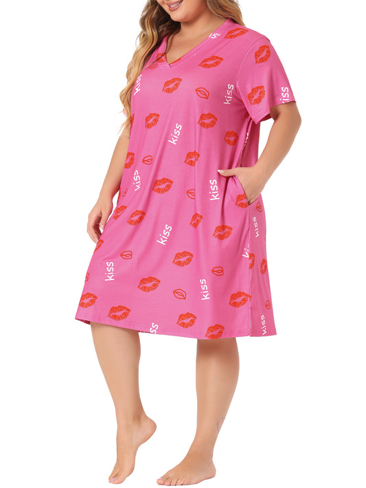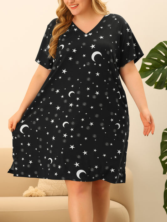 Women Plus Size Pajama Loungewear V Neck Star Moon Pattern Sleepwear Nightgown