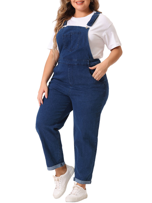 Women's Plus Size Casual Stretch Adjustable Denim Bib Overalls Jeans Pants Jumpsuit
