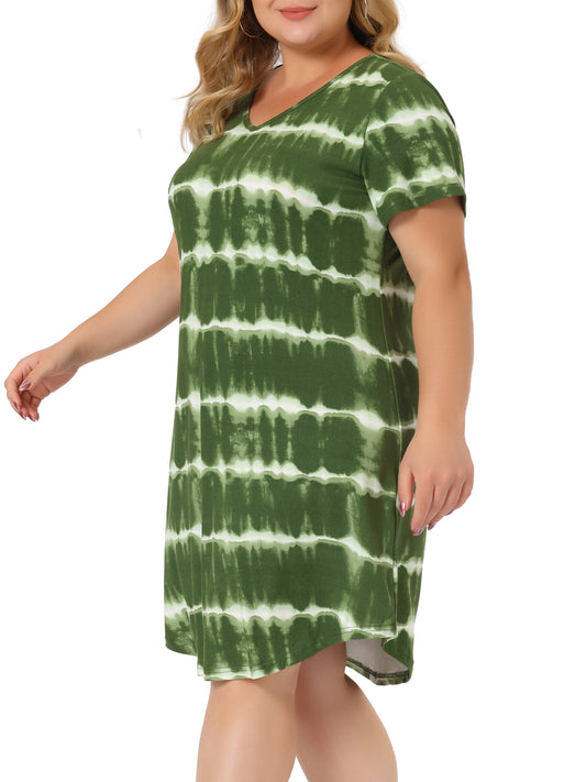 Women Plus Size Tie Dye Summer V Neck Short Sleeve Casual Dresses