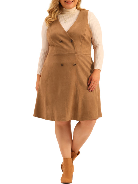 Women Plus Size Overall Dress Button Casual Faux Suede Dress