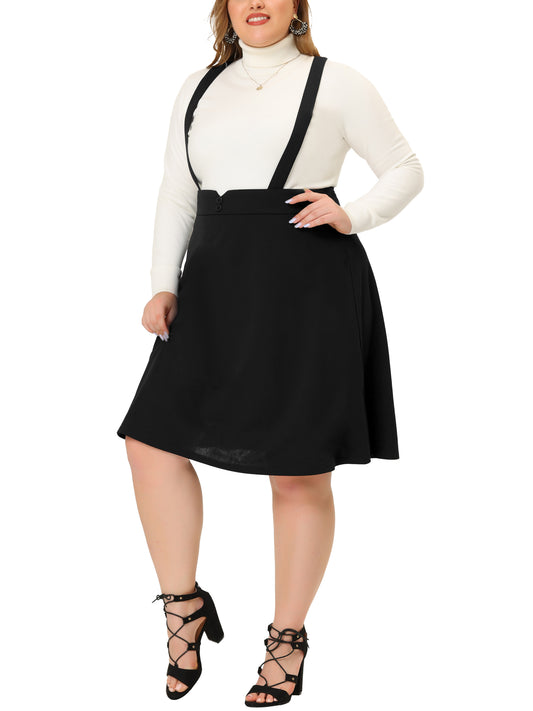 Women's Plus Size Overalls Skirt Button Up Flare A-Line Corduroy Mini Suspender Skirt