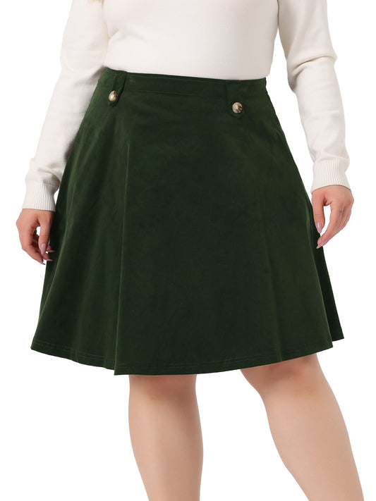 Women Plus Size Retro Corduroy Skirts Elastic Waist Button Decor Fall A-Line Mini Skirt