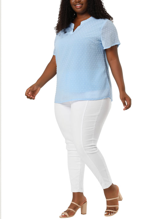 Women Plus Size Summer Top Swiss Dots Notched Neck Short Sleeve Blouse