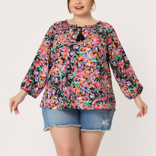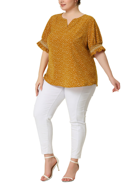 Women's Plus Size Blouse Pin Dots Smocked Floral Boho Blouse