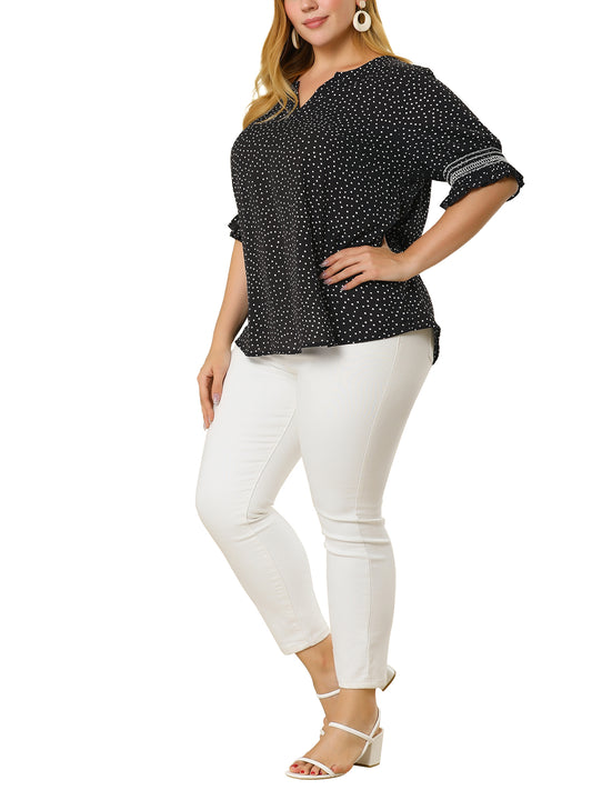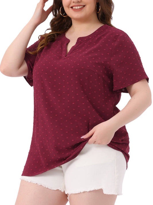 Women Plus Size Summer Top Swiss Dots Notched Neck Short Sleeve Blouse