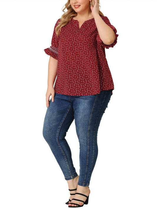 Women's Plus Size Blouse Pin Dots Smocked Floral Boho Blouse