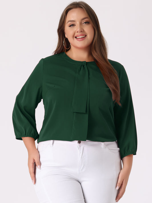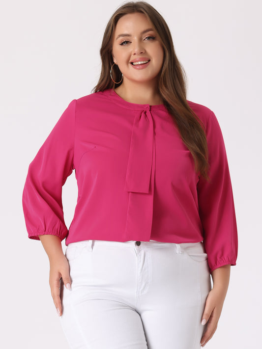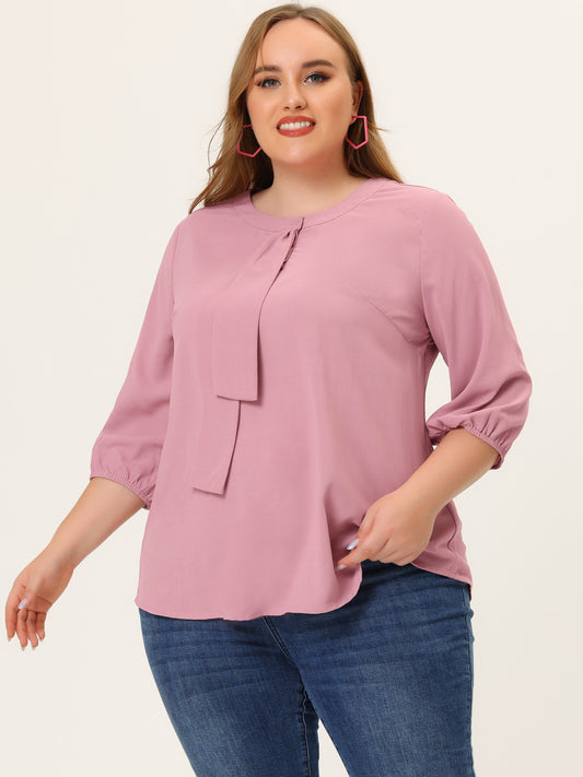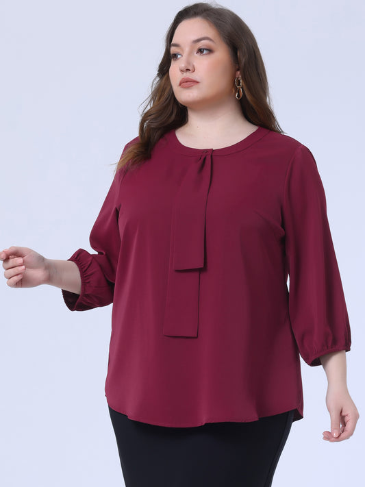 Women's Plus Size Work Round Neck Ruffle Chiffon Blouse Top