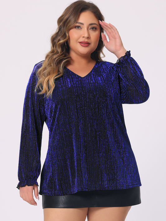 Women's Plus Size Metallic Party Glitter Long Sleeve Shiny Disco Sparkle Top
