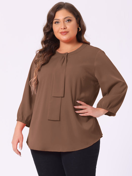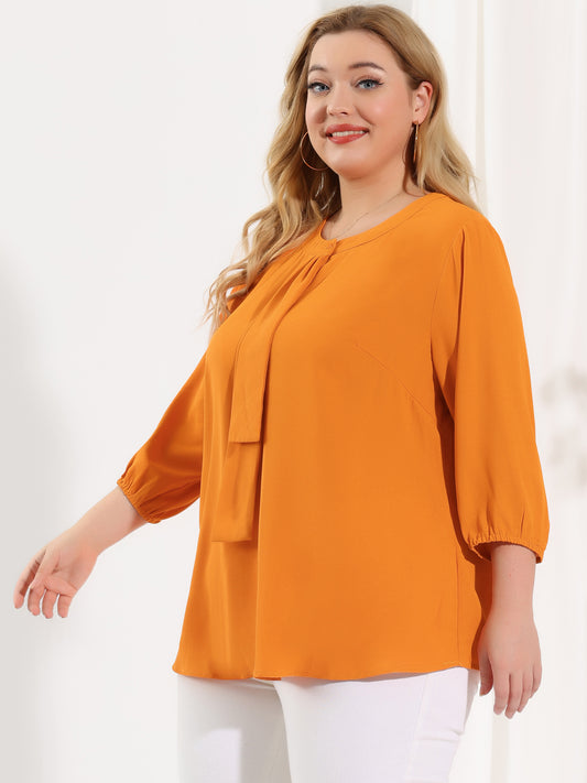 Women's Plus Size Work Round Neck Ruffle Chiffon Blouse Top