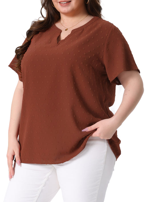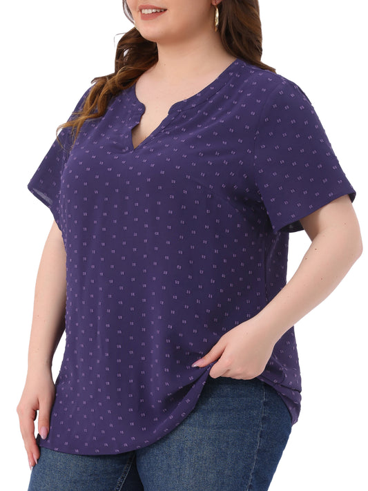 Women Plus Size Summer Top Swiss Dots Notched Neck Short Sleeve Blouse