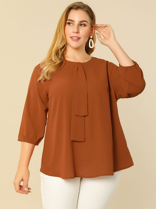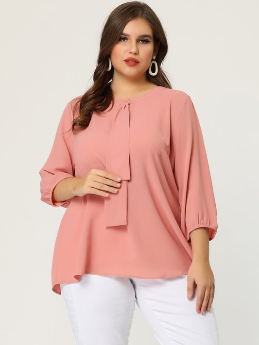 Women's Plus Size Work Round Neck Ruffle Chiffon Blouse Top