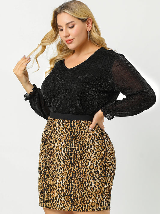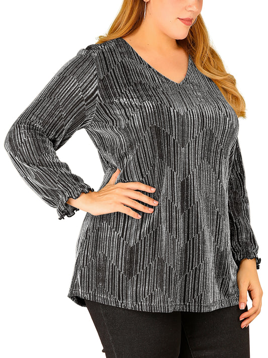 Women's Plus Size Metallic Party Glitter Long Sleeve Shiny Disco Sparkle Top