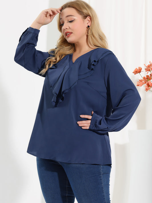 Women's Plus Size Ruffle Blouse Chiffon V Neck Long Sleeve Top