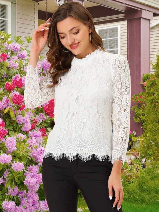 Women's Long Sleeve Lace Top Dressy Elegant Peplum Blouse Shirt (Available in Plus Size)