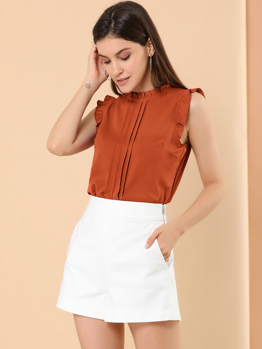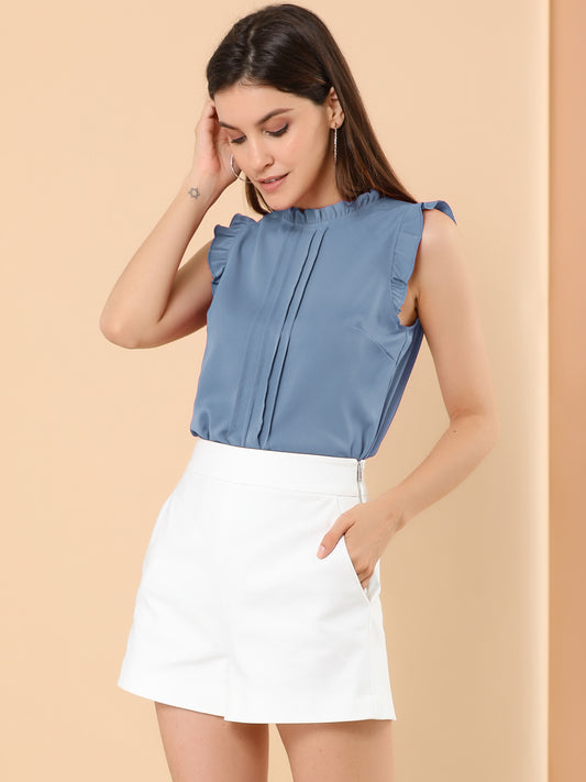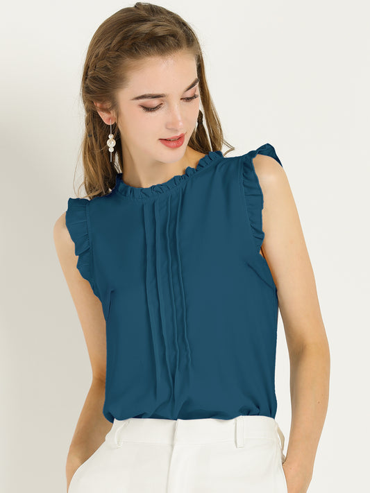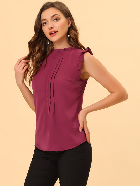 Women's Business Casual Sleeveless Ruffle Blouse Top (Available in Plus Size)