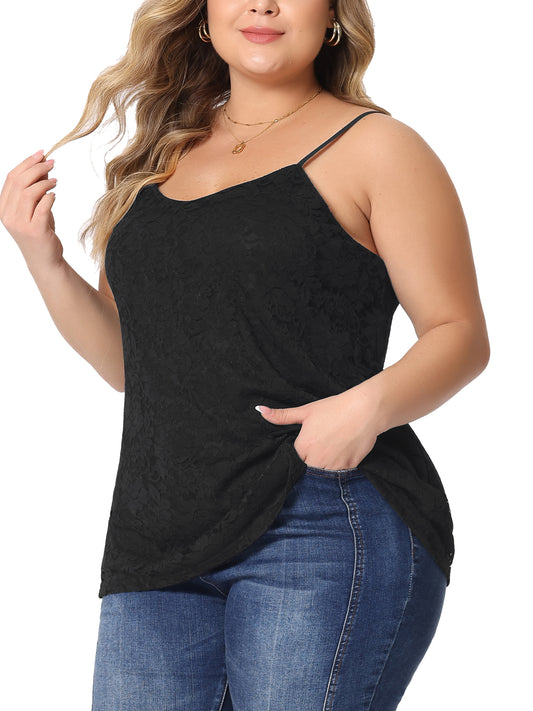 Women Plus Size Camisole Adjustable Strap Elegant Lace Cami Tank Top