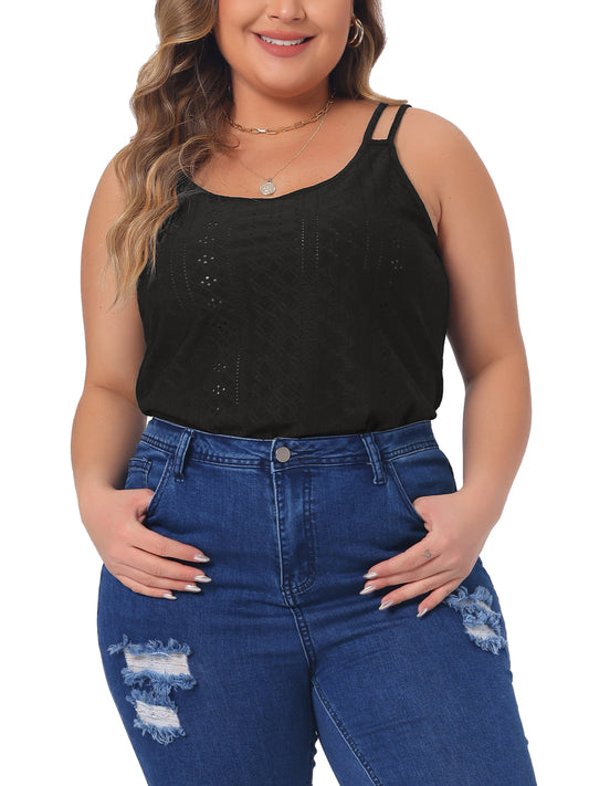Women Plus Size Tank Tops Eyelet Embroidery Sleeveless Spaghetti Strap Loose Fit Cami Top