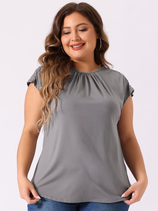 Women's Plus Size Blouse Ruched Round Neck Casual Short Sleeves Top