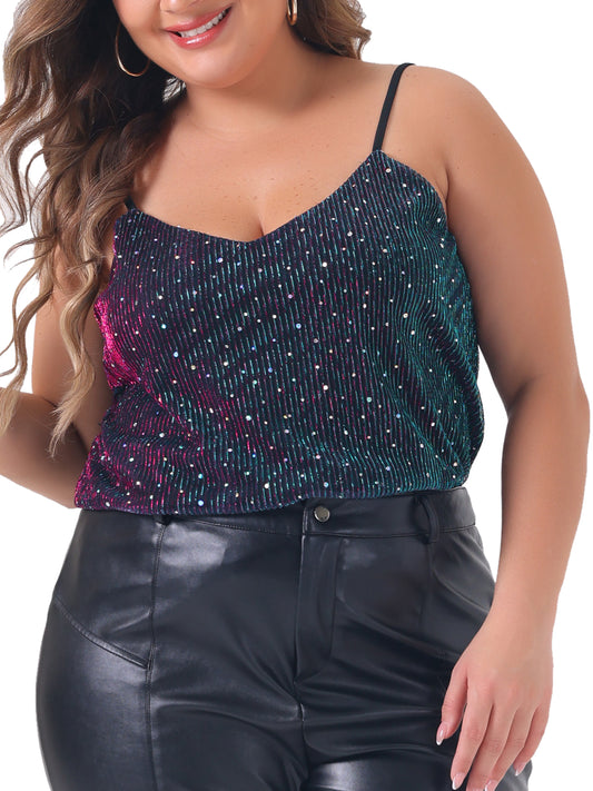 Women Plus Size Sequin Sparkle Glitter Cami Sleeveless Gradient Party Camisole Tank Top