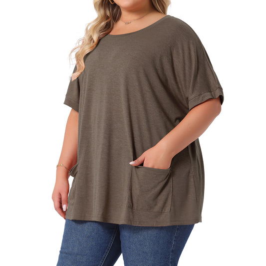 Women's Plus Size Crew Neck Short Sleeve Tops Loose Fit Casual Summer T-Shirt Tee Tops with Pocket